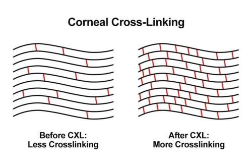 Keratokonusta problem, korneanın şeklinin bozulması değil; bu şekil bozulmasına yol açan kolajen yapının gevşemesi ve bağ dokusunun zayıflamasıdır. Cross-linking tam olarak bu noktaya etki eder.